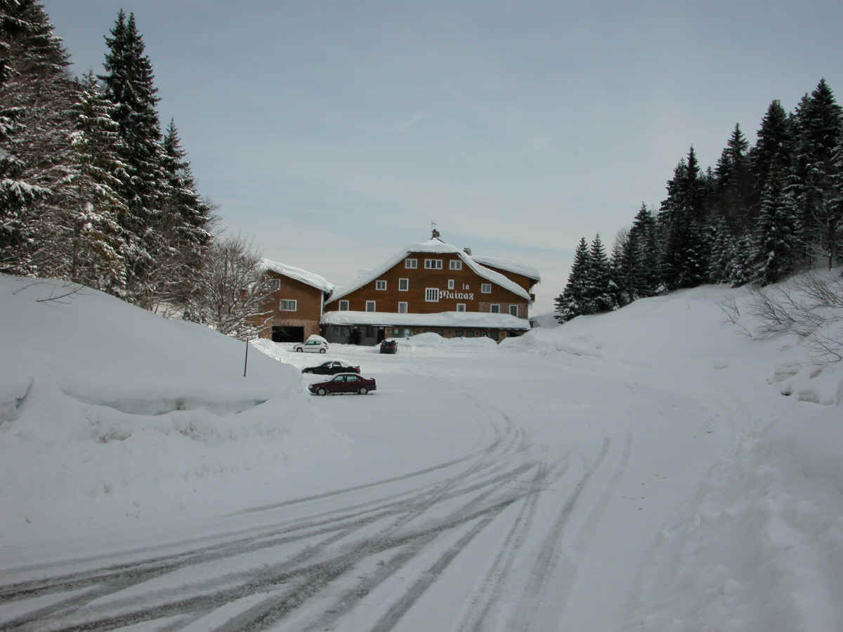 le col de la Faucille - le restaurant-hôtel la Mainaz - derrière... le Mont Blanc