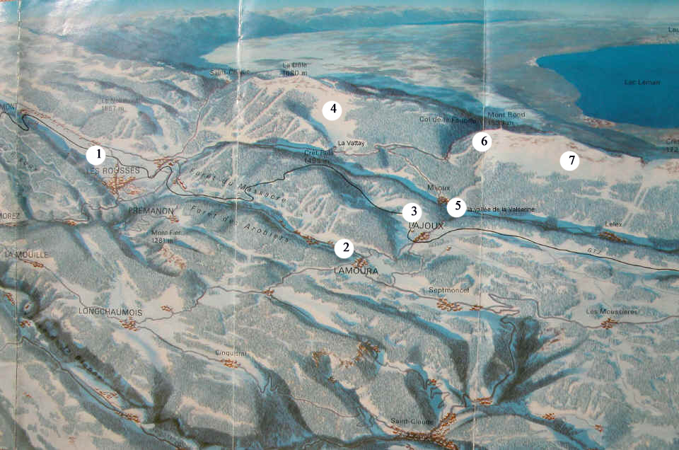 (les Rousses(1), Lamoura(2), Lajoux(3),